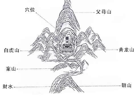 在尋龍點穴的全過程中,在沈陽墓地陰宅的四周有幾座山的部位較為關鍵,各自是案山、朝山、龍虎山。