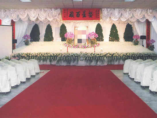 沈陽墓園小編知道靈堂的布置一般是靈堂中央的上方高掛逝者遺像,下書斗大的"奠"或"悼"字,左右兩邊高掛挽聯(lián),用以概括死者一生的主要功績或經(jīng)歷;靈堂兩側(cè)多掛有挽聯(lián),多少不一;民間還將親朋贈送的祭幛懸于兩側(cè),越多就越顯得熱鬧風(fēng)光;靈堂前設(shè)供桌,上擺祭物,多為菜肴果品之類,兩旁香燭高燒;靈柩置于供桌之后。