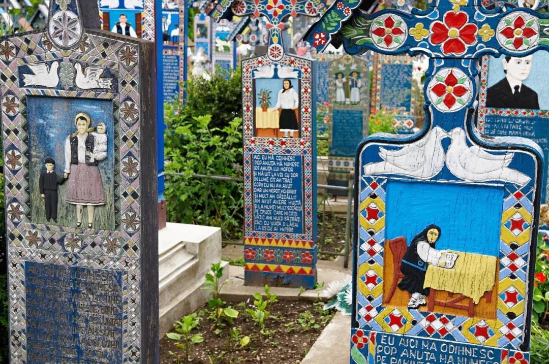 比如羅馬尼亞的Merry Cemetery,是當地的一位木雕家設立的,他一輩子為村民制作了700多塊明亮歡快的墓碑,就連照片也是卡通頭像。