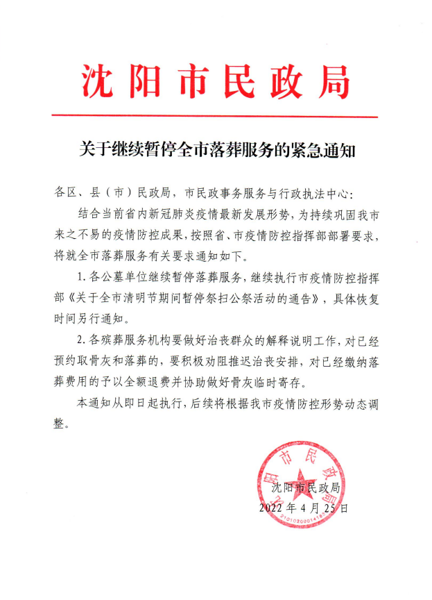 沈陽墓園小編知道在這個難熬的疫情期間,無論身在何處,都不曾忘卻對已故親人的思念,結合現階段防疫政策,為持續鞏固沈陽市來之不易的疫情防控成果,按照省、市疫情防控指揮部部署要求,將就全市墓園落葬服務有關要求通知: